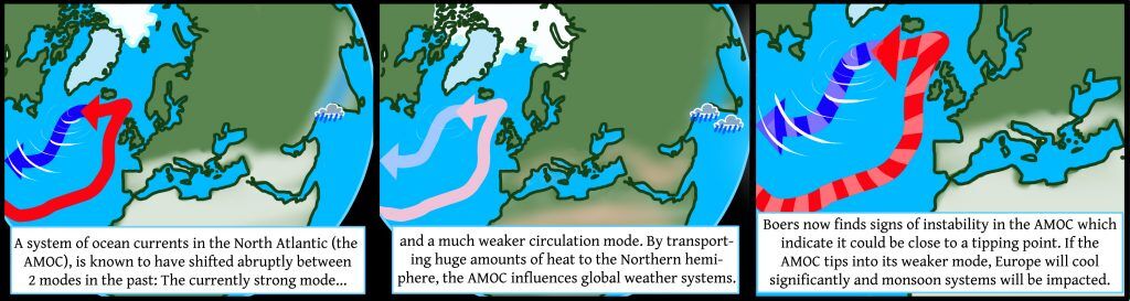 What is the AMOC I hear you ask? According to Boers and other climate scientists, the AMOC is one of the major ocean current systems transporting warm surface waters toward the northern Atlantic. Already alarmed at an unprecedented slowing of the AMOC, Boers went one better and excitedly announced that the whole system will imminently shut down. Of course, this will result in catastrophes so apocalyptic that any Hollywood screenwriter would be positively jealous that a scientist beat them to the punchline of the next manmade global warming blockbuster.