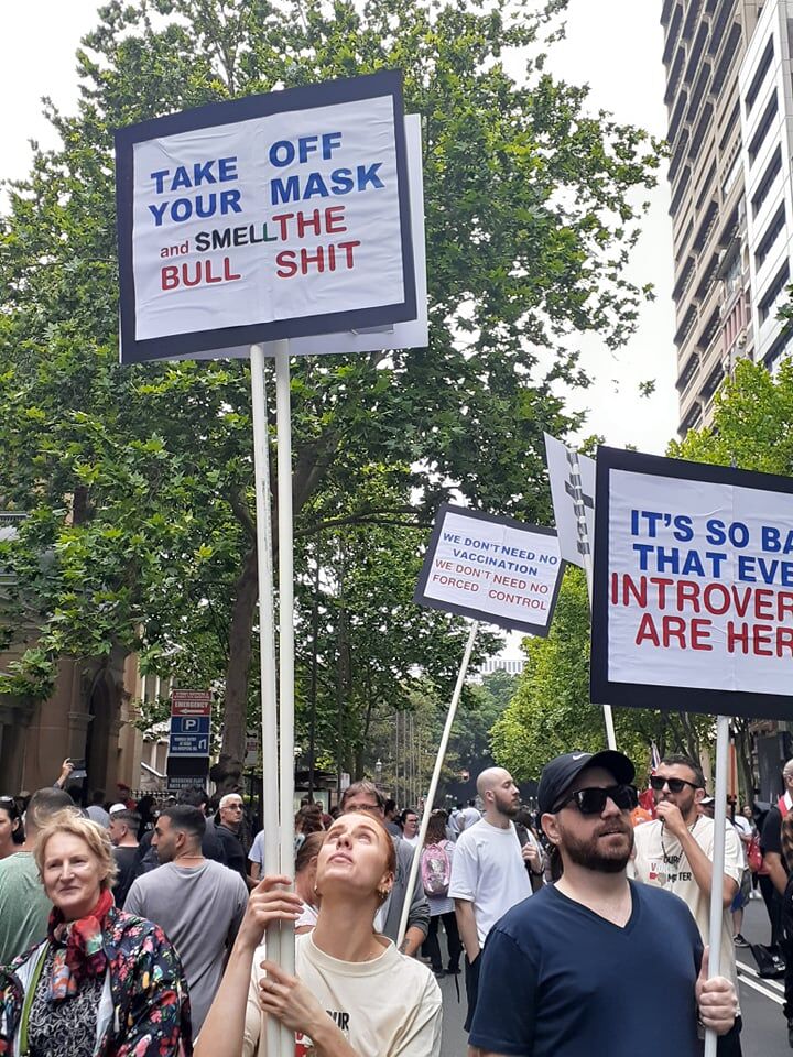 I have never witnessed such a diverse group of Australians united in the same cause – freedom from coercion – it was special to sense this unity. The crowd all seemed to understand that behind Covid and the Vax, is the push for a political reset, total compliance, and the taking away of human rights. At the very least it is clear, as told me by several doctors, that there is no informed consent by those having the vax – which raises the question of how freely people choose to have it. Many friends have told me they were forced to take it, though they did not want to. And they were protesting here too. Since last year when the vax was ‘best medical advice’ there have been new alternate, evidence-based treatments.. This is of great interest evidently to many around the world. Australian Professor Thomas Borody, who migrated here from Poland in his youth, has just completed another research study indicating the clear effectiveness of Ivermectin as an early treatment. It was something to hear Waltzing Matilda sung by so many, and the song by the Australian group, the Seekers, ‘I am, you are, we are Australian’. Federal politician Craig Kelly, leader of the United Australia Party, who has shown great courage in speaking for the rights of those losing their jobs and their rights in Parliament, was cheered as a modern day hero. Placards jostled with each other saying “Freedom from tyranny”, “They’ll have to build bigger camps”, “Hands off our children”, “It’s so bad even the introverts are here”, “Vax reactions are not rare just rarely reported”, “Take off your mask and smell the bullshit” and “Brad is a Hazard to Australia” – the latter referring to the Brad Hazard, the New South Wales Minister for Health and Medical Research. No-one is under any illusions, or perhaps some are, but on this Saturday they were not – about the relentless aims of the political reset. These Australians who protested, numbering nearly a million around the entire country, showed that they do not buy the mass global reset and will never cease to stand for human rights.