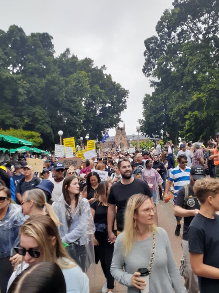 On Saturday 20/11/2021, Sydneysiders, joining other Australians around the country, came to the city to protest against Mandated Vaccines. Crowd estimates were anywhere from 100,000 to half a million. The mainstream media simply said ‘thousands’ and was almost embarrassed to report the event. The huge crowd filled the entire area of Martin Place, spilled into College Street, Market Street, George Street. Police were everywhere but had nothing to do as the protest was peaceful. They had met in Hyde Park to start with and began their march through the city. Catholics joined them after having prayed at St Mary’s Cathedral and onwards they went –traffic was at a standstill – some saying it was the biggest march ever held in Sydney. Among them were people who had lost their jobs in hospitals, stood down teachers, people about to lose their jobs in offices, groups of Orthodox and Catholics, Vegans, New Agers, vaccinated and unvaccinated, left wing, right wing, supporters of Aboriginal Rights not wanting forced vaccinations, and supporters of the United Australia Party. As I travelled into to city by bus most passengers spoke of the injustices levelled at those who had lost their jobs – they sang, they encouraged each other, kept writing placards. And they were mainly young. All told me they would be willing to do antigen testing each day but were never given the option. The question arises – why lose so many skilled young workers when there is a shortage of them in Australia? Of course it is about compliance, compliance without thinking. These young people said they were pro-vax, but not THIS set of vaxes, saying they were experimental, aroused suspicion, and they had read the work of many researchers around the world stating serious concerns about them. The atmosphere in the city was, respectful, electric and united. An alternate miserable, small protest against ‘fascism’ was held at the Town Hall, clearly set up by agents provocateurs. No-one took any notice of them.